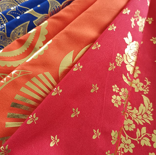 100% poliester Tkanina z nadrukiem w kolorze złotym